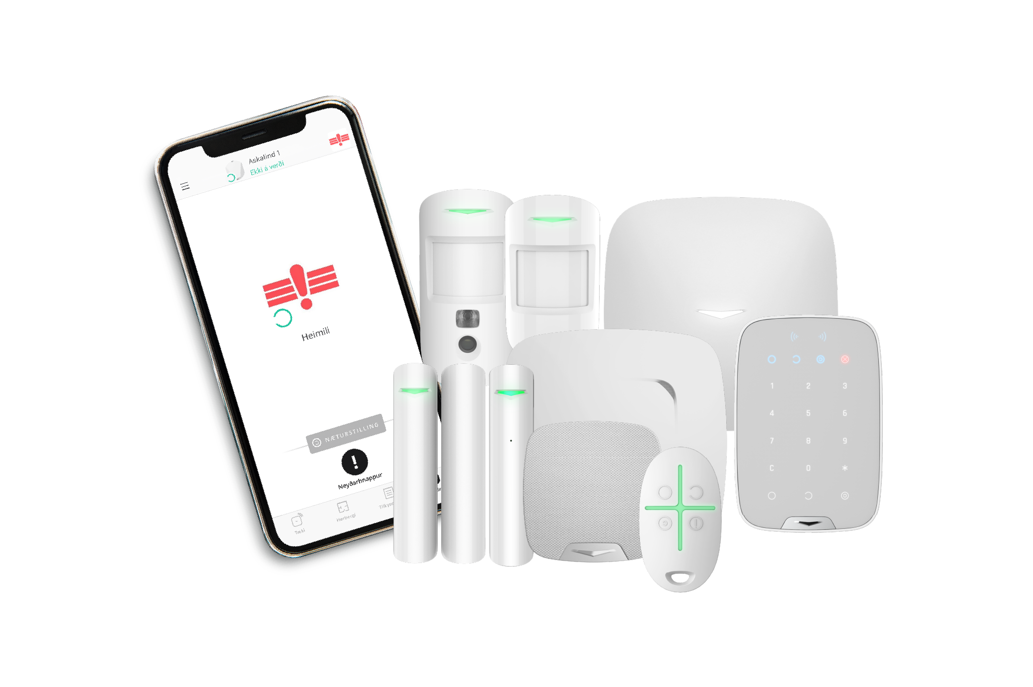 Öryggismiðstöðin offers a range of solutions that can be tailored to the needs of each customer. The security system can be connected to smoke detectors, gas detectors, water leak sensors, glass break sensors, door sensors, temperature sensors, sirens, smart locks and cameras. The whole system is controlled by the same app, by remote control, keyboard, and/or access card.