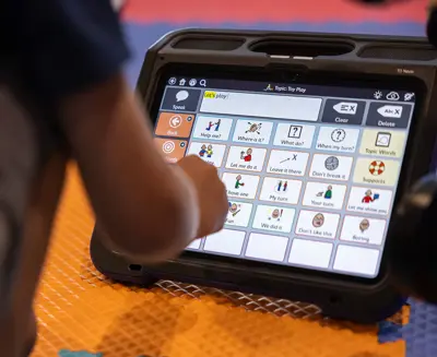 Tækið kemur með fyrirfram uppsettan hugbúnað sem styður bæði táknbundna og textabundna tjáningu, svo notendur geta valið þá leið sem hentar best hverju sinni. Einnig er hægt að sérsníða raddir, tungumál og uppsetningu eftir þörfum.